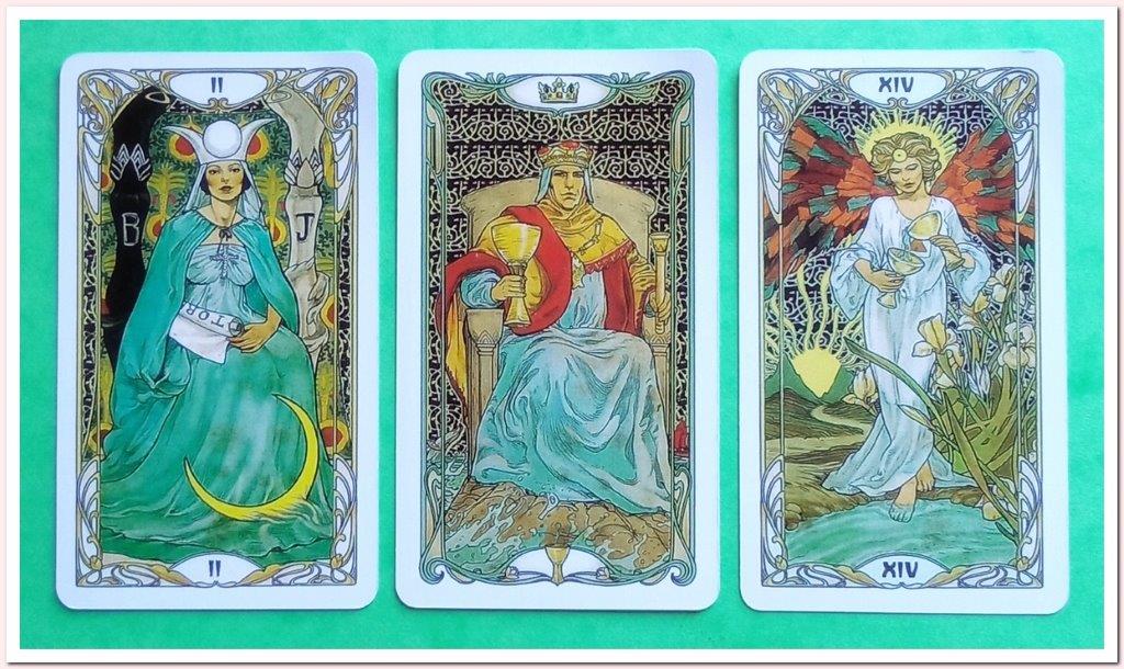 Przykład: Karta Kapłanka oznacza, że kierujesz się intuicją, ale wciąż trzymasz część emocji w ukryciu. Czasem Kapłanka wskazuje, że będąc w relacji masz przed partnerem tajemnice i są między Wami niedopowiedzenia. - Karta nr 2 – Uczucia i intencje drugiej osoby